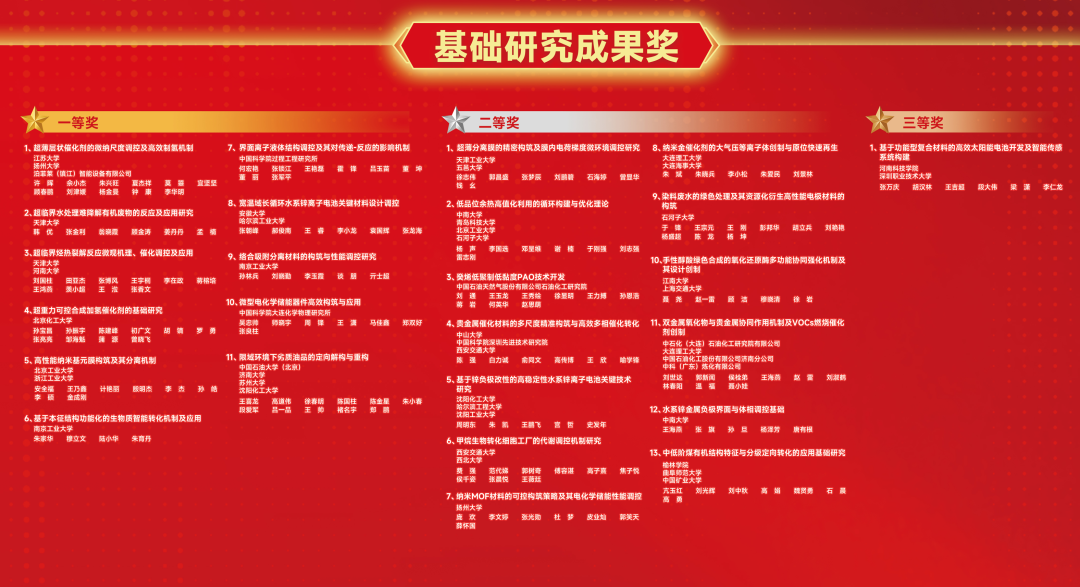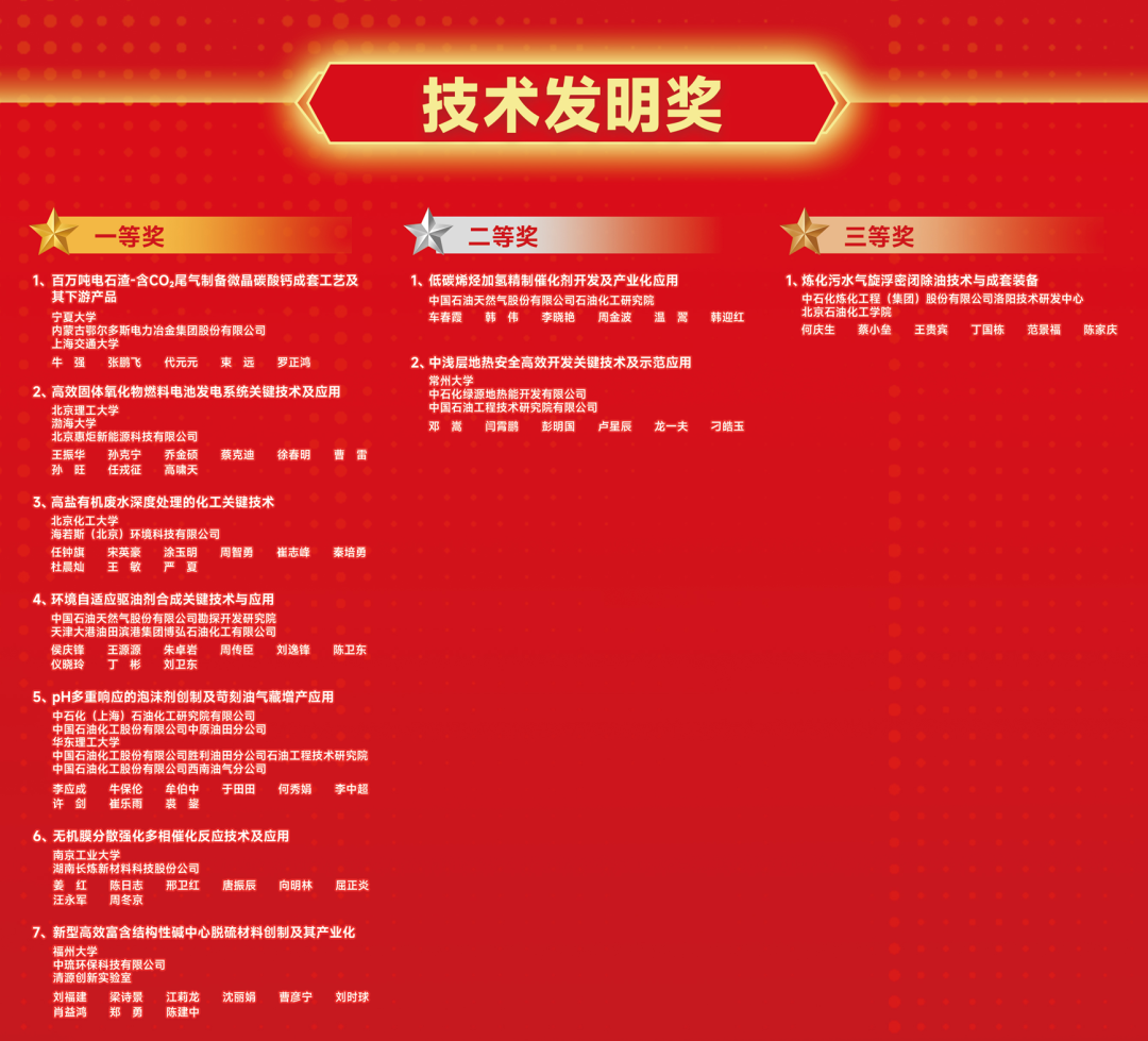 11月21日上午,在北京召開的中國化工學(xué)會第四十一屆理事會第五次會議上,2025 年度中國化工學(xué)會科學(xué)技術(shù)獎隆重頒發(fā)。60項科學(xué)技術(shù)成果獲得獎項,其中中石化石油化工科學(xué)研究院有限公司“低干氣產(chǎn)率的新型變徑流化床催化裂化技術(shù)研究開發(fā)及工業(yè)應(yīng)用”等25項成果獲得“科技進步獎”,寧夏大學(xué)“百萬噸電石渣-含CO2尾氣制備微晶碳酸鈣成套工藝及其下游產(chǎn)品”等10項成果獲得“技術(shù)發(fā)明獎”,江蘇大學(xué)“超薄層狀催化劑的微納尺度調(diào)控及高效制氫機制”等25項成果獲得“基礎(chǔ)研究成果獎”。